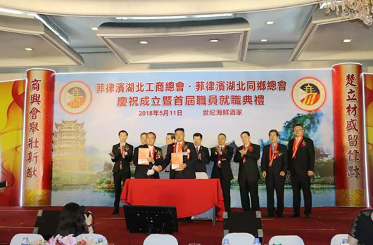 菲律宾湖北工商总会·同乡总会5月12日讯,5月11日晚,菲律宾湖北工商总会·同乡总会庆祝成立暨首届职员就职典礼在菲律宾马尼拉市隆重举行。王荣涛任首届会长。