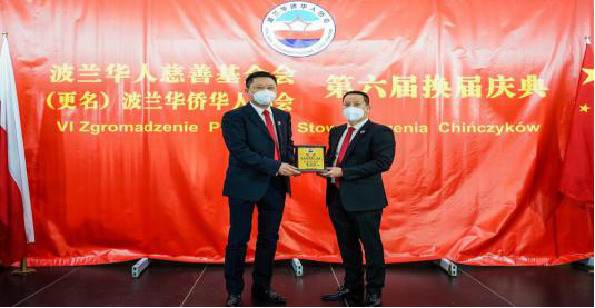 (记者 杜国勇)波兰华人慈善基金会正式更名为波兰华侨华人协会并于当地时间3月20日在华沙兴隆酒店举行了第六届换届大会和就职典礼。中国驻波兰大使馆赵洋参赞、领事部主任王占杰、浙江省365app下载登录_be365体育平台app_旧版彩票365下载副主席张维仁、瑞安市365app下载登录_be365体育平台app_旧版彩票365下载主席叶应东、欧洲华侨华人社团联合会副监事长温怀钦以及波兰各社团侨领代表近50人通过视频方式参加了典礼活动。