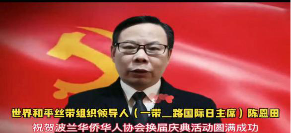 世界和平丝带组织陈恩田主席发来视频祝贺