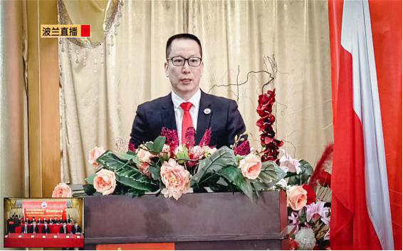 中国驻波兰大使馆赵洋参赞代表刘光源大使对换届活动表示祝贺。他希望波兰华侨华人协会在赵德金会长带领下,坚持“诚信为本、爱心为源、交流共享、合作共赢”的办会宗旨,充分发挥桥梁与纽带作用,团结携手其它侨团,为促进中波经贸合作、增进两国人民相互了解及友谊注入新能量。同时,还希望侨团和侨胞做好疫情防护,加强团结,同舟共济,度过难关。