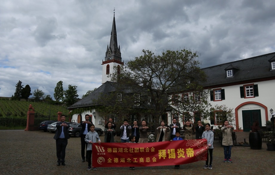 应湖北省人民政府和国家相关部委邀请,2021年5月23日星期天,德国湖北社团联合会/全德湖北工商总会在德国莱茵河畔的古老酒庄进行了海外华侨华人故里寻根拜谒炎帝的活动。
