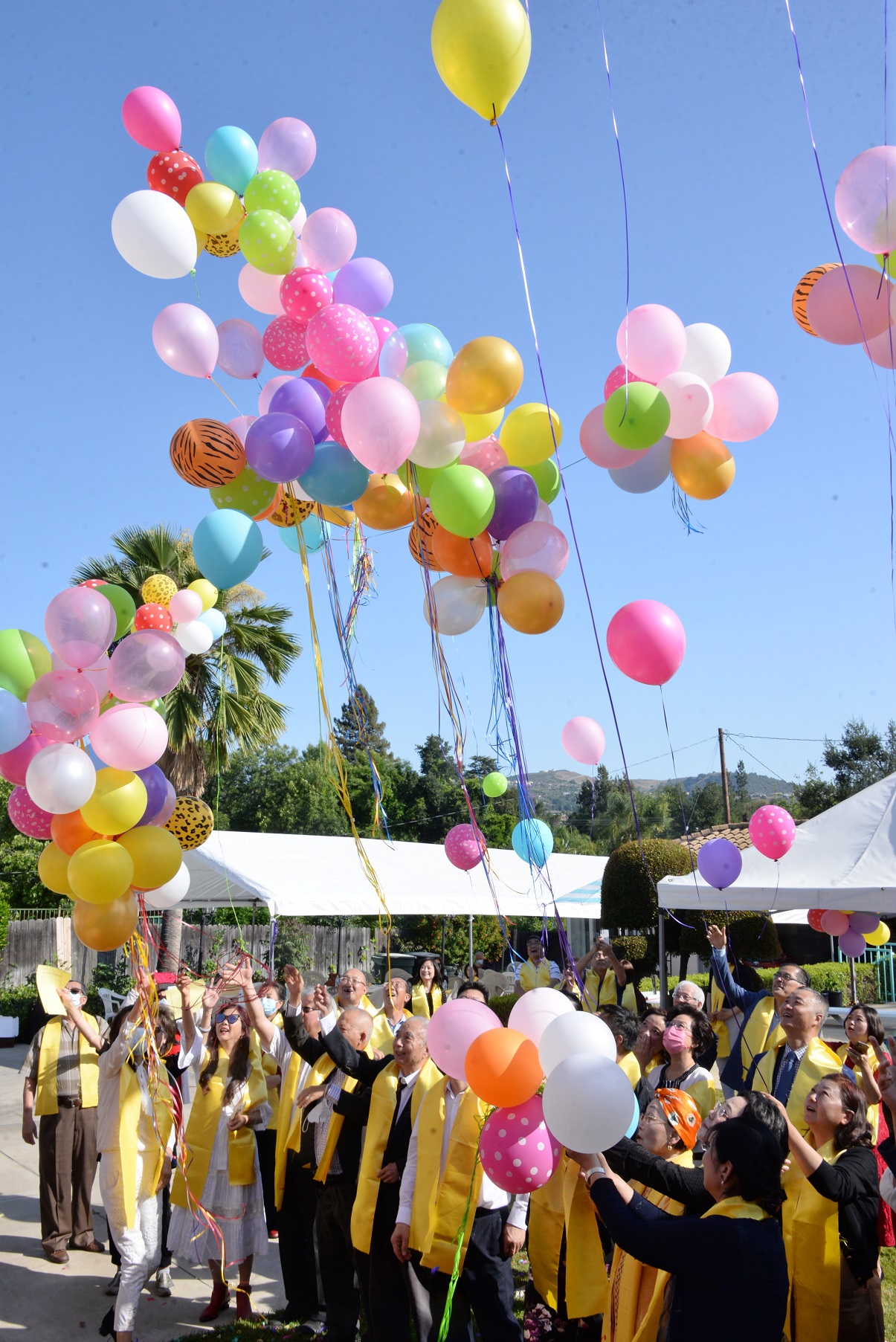 随后,联合主办单位代表按顺序敬香。全体朗诵,美国雕龙诗社创始社长王玲、赵林主席领诵。祭拜典礼最后掀起高潮,天人合一 现场全体人员人手两个气球,同时放飞。愿炎帝的在天之灵护佑华夏大地五谷丰登、国泰民安,护佑世界各地的华夏儿女幸福安康、保佑世界和平安泰。
