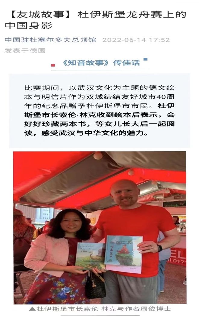 中国驻杜塞尔多夫总领馆对活动也予以关注,在其公众号上发布推文《【友城故事】杜伊斯堡龙舟赛上的中国身影》中特别提到《知音故事》传佳话。
