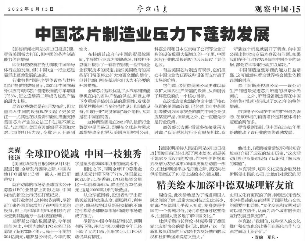 6月15日,参考消息以《精美绘本加深中德双城理解友谊》为题进行了报道。