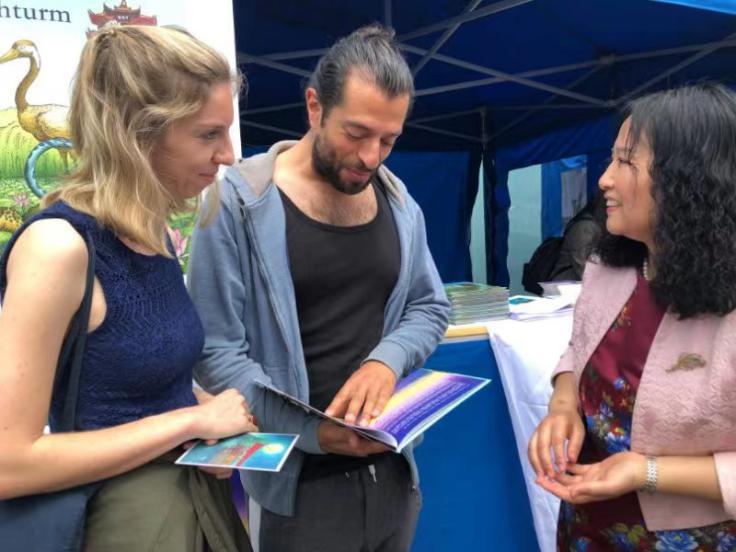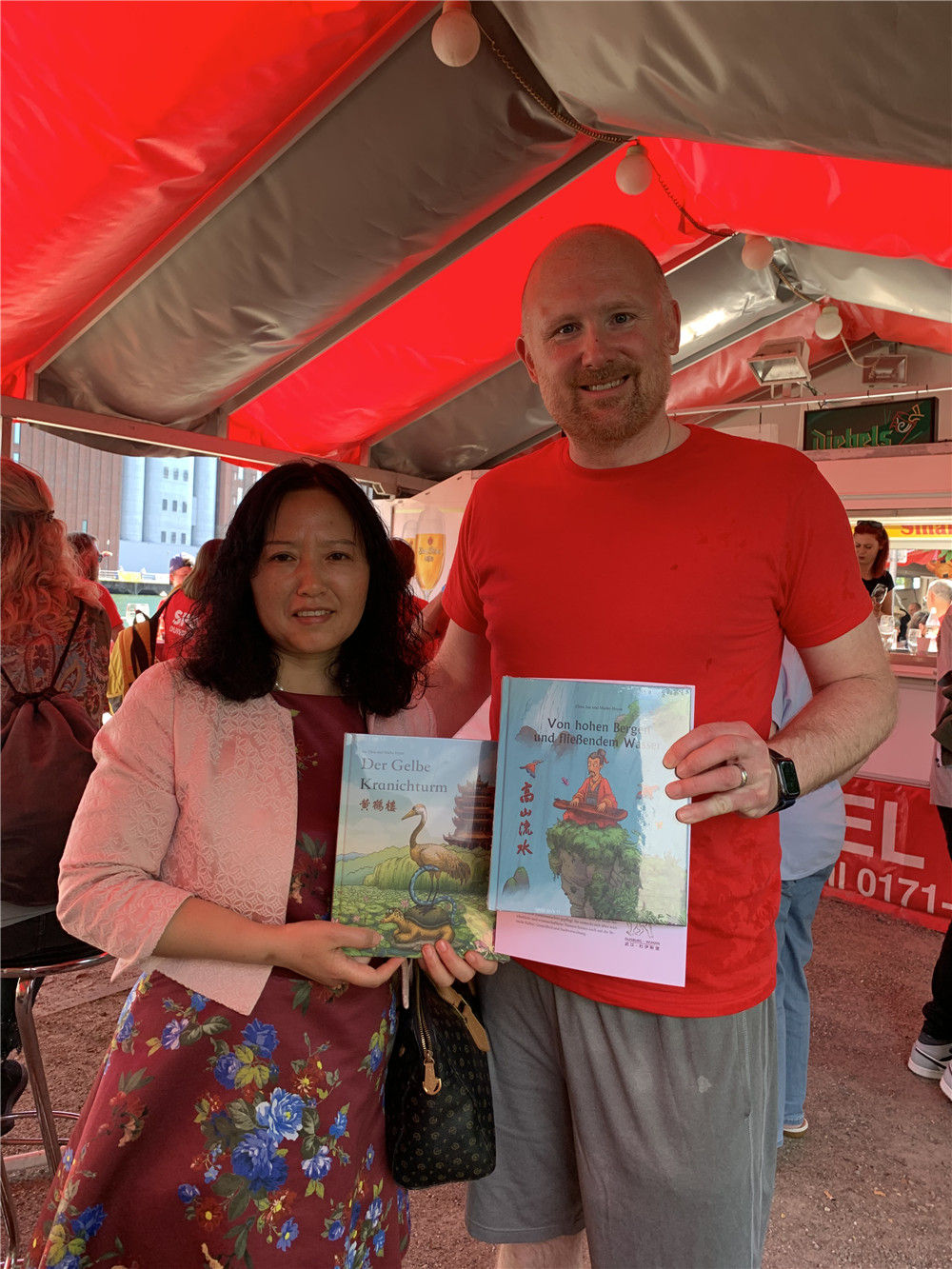 莉莉安娜,一位来自比例菲尔德的幼师,看了两本童话故事的图文介绍,非常激动,要把这两个故事介绍给幼儿园的小朋友。她说,德国作为一个多元化社会,儿童图书市场上关于中国的图书很少,介绍城市故事的几乎没有,这两本图文并茂的书从内容到画面都非常精美吸引人,她希望带回去向小朋友们介绍中国的传统文化,并说小朋友一定会喜欢的。