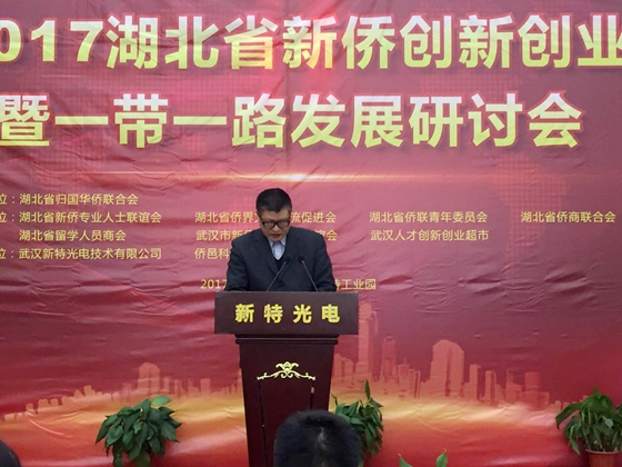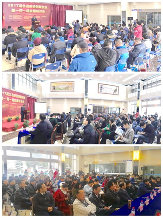 2017年12月1日下午,“2017湖北省新侨创新创业暨一带一路发展研讨会”在武汉成功举行。湖北省365app下载登录_be365体育平台app_旧版彩票365下载主席谭作刚、副主席刘文华、舒正荣、陈义红、欧美同学会专职副会长燕元沂、武汉市365app下载登录_be365体育平台app_旧版彩票365下载副主席徐祥忠、湖北省外侨办国内处处长杨一、东湖高新区人才办副主任李新亮、武汉市人才超市总经理刘峻峰、华侨大学湖北校友会会长王革、文促会会长夏先重、法顾委主任谢文汉、新侨会副会长陶兵林、白燕、周琼、秘书长李文化等约130人参加会议。舒正荣副主席主持会议。