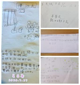 夏令营期间,营员们每天认真阅读中国传统文化小故事,坚持每天打卡,写文字、画漫画、拍视频,以各种形式记录当天的学习情况。