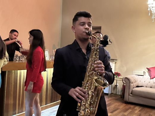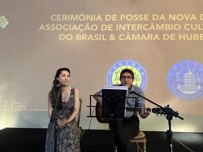 萨克斯演奏作为西式晚宴的背景音乐,穿插了郑亚蒙女士二胡独奏,赵粒粒女士和巴西友人一起为来宾们演唱了歌曲,活动在欢乐的气氛中结束。