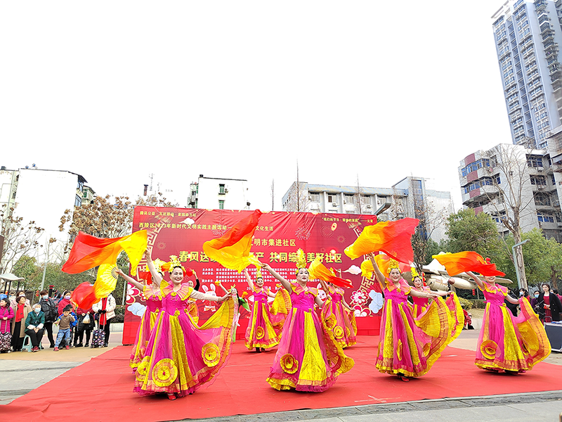 (西陵区锦绣社区 严玉露 王汉宜)2月3日下午,在元宵佳节来临之际,西陵区葛洲坝街道锦绣社区“侨心向党”京剧艺术团的新歌舞“万家团圆中国年”参加了由湖北省慈善总会、西陵区委宣传部、西陵区新时代文明实践中心主办的“春风送暖 复工复产 共同缔造美好社区”元宵节主题文化活动,热情的歌舞表达了侨胞侨眷同圆共享中国梦的共同心愿,现场迎来阵阵掌声。
