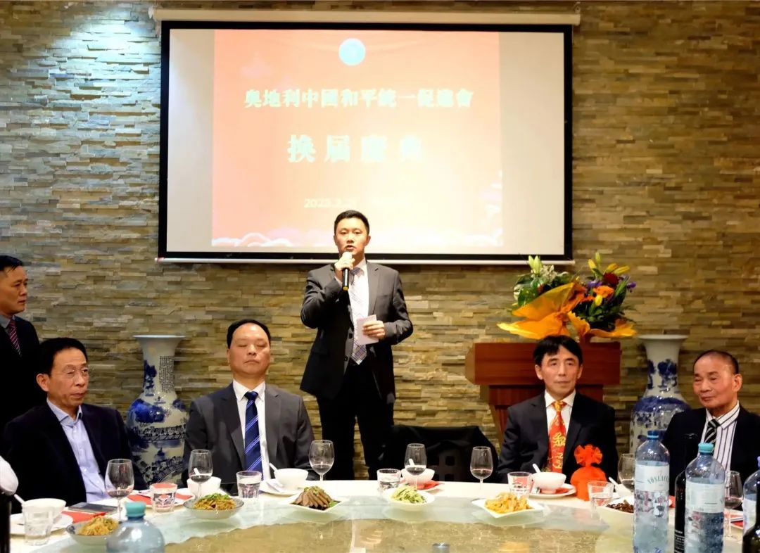 余峰指出,希望奥地利中国和平统一促进会在新任会长司良信博士的带领下,继续高举反“独”促统鲜明旗帜,向奥地利各界讲明“解决台湾问题是中国人自己的事,要由中国人来决定”的道理,讲透“实现两岸和平统一,不仅是中华民族和中国人民之福,也是国际社会和世界人民之福”的意义。让奥地利朋友们充分认识到,维护台海和平稳定、促进中国统一是历史大势、人心所向。