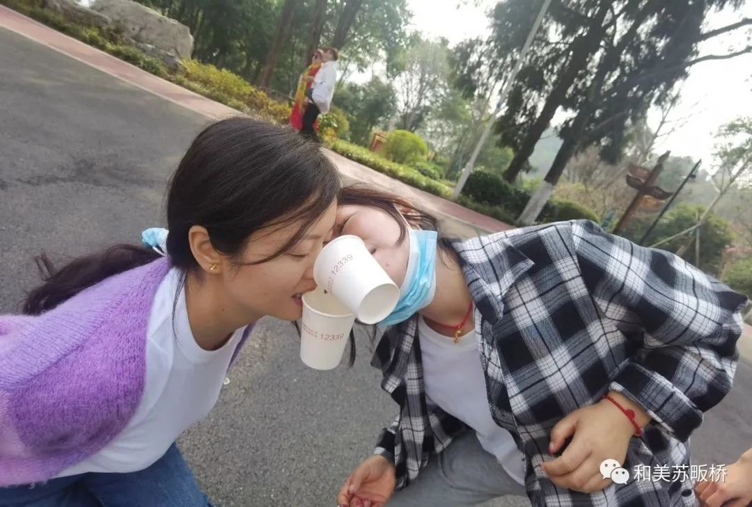 徒步到半山腰小广场,进入游戏环节。蒙眼吃香蕉、纸杯传水、萝卜蹲、集体小舞蹈,每个游戏环节都生动有趣,大家铆足劲头、默契配合,欢笑声此起彼伏,活动现场热闹非凡。