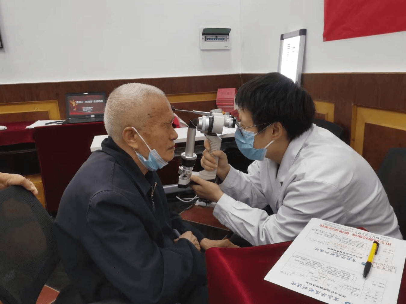 在学院街道气象台社区,近百名群众参与检查,在医生的引导下依次登记个人信息,配合视力检测。对于行动不便的白内障患者,义诊队还上门开展服务,帮助更多白内障患者重见光明,重拾生活信心。