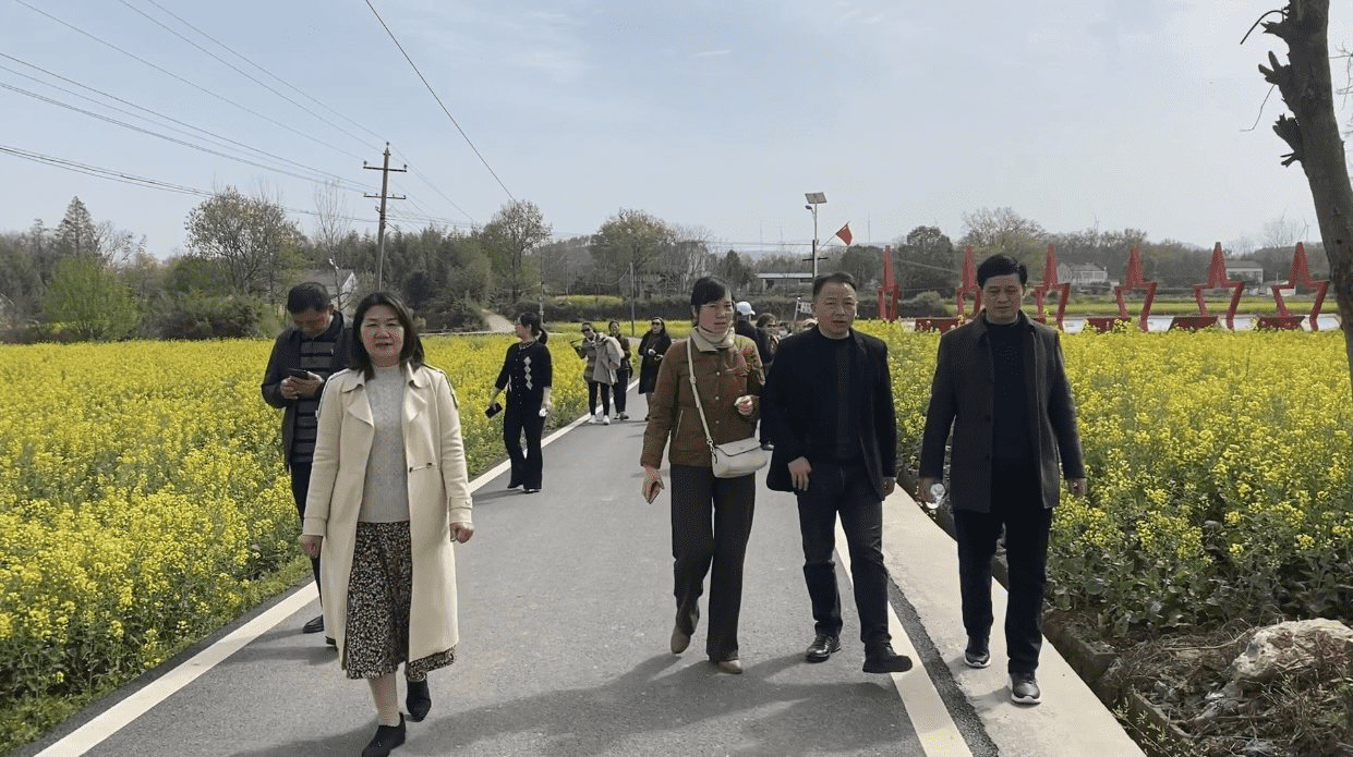 阳春三月,春光明媚,金黄的油菜花一望无垠。离开八角,大家驱车一路参观八角----万家坪水系连通工程,通过水系连通建设,将红色八角、白鹭滩湿地公园、四坪游园等人文景观节点串联其中,一张生态水网体系分布图在乡村徐徐展开,绘就了一副“河畅水清、景美民富”的美丽乡村新画卷。置身白鹭滩湿地公园赏油菜花、踏青,在和煦的春风里既放飞了心情,又增进了友谊。