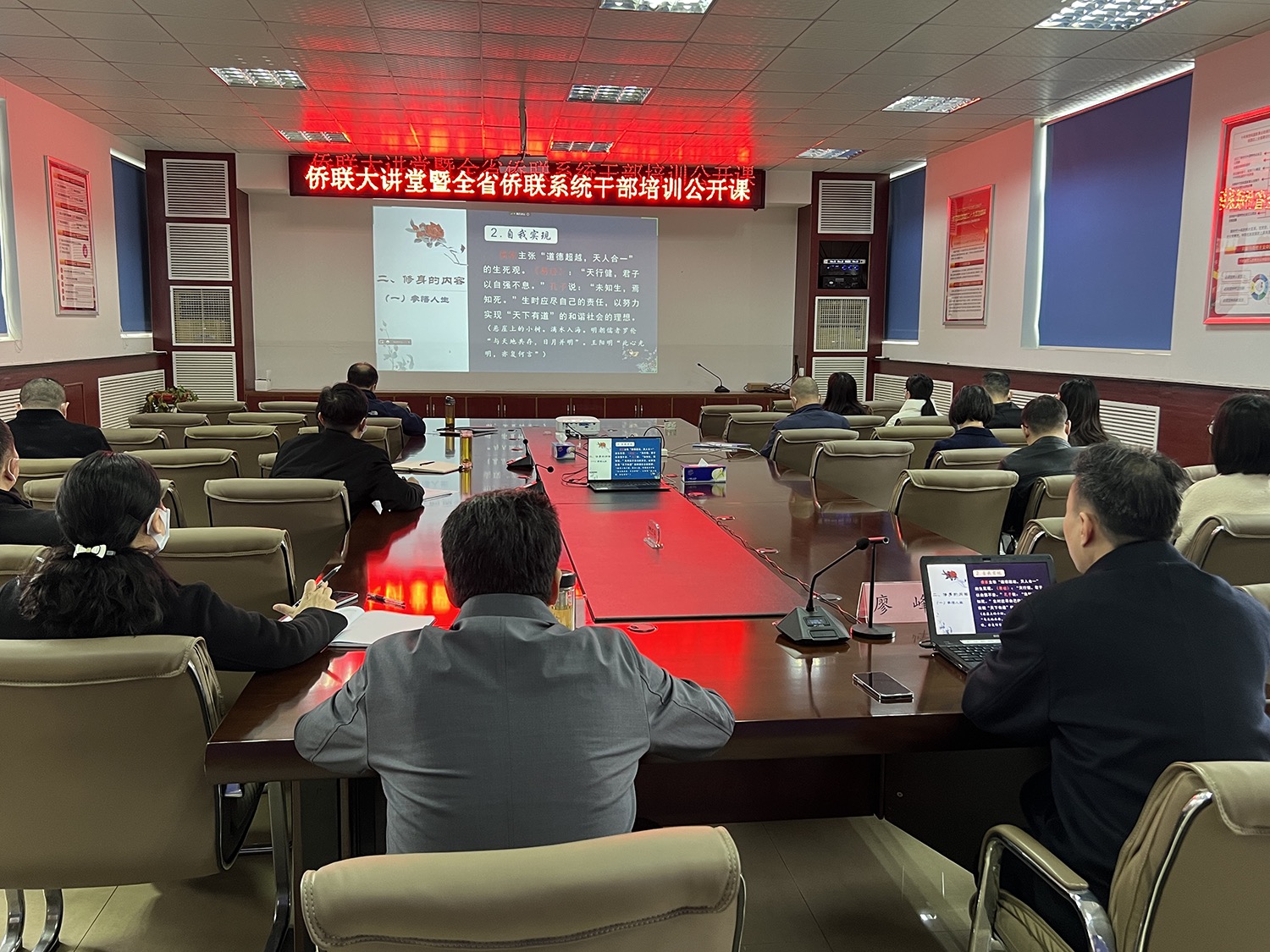 活动邀请中共湖北省委直属机关工委党校校长廖峰,做题为《国学与修身》的专题辅导报告。廖峰作为党建工作专家,对党建工作有着较深的理论思考和丰富的实践经验,在中国传统文化和国学经典等方面也颇有造诣。他从国学的视野和角度出发,结合具体事例,对修身的目的、修身的内容、修身的方法三个方面进行了详细讲解,深入浅出地阐述了国学经典与中华民族伟大复兴的联系,让大家感受了博大精深的传统文化,汲取了民族精神的丰富营养,思想性、哲理性、指导性都很强,对于我们进一步塑造人格、培养三观、传承文明大有裨益。